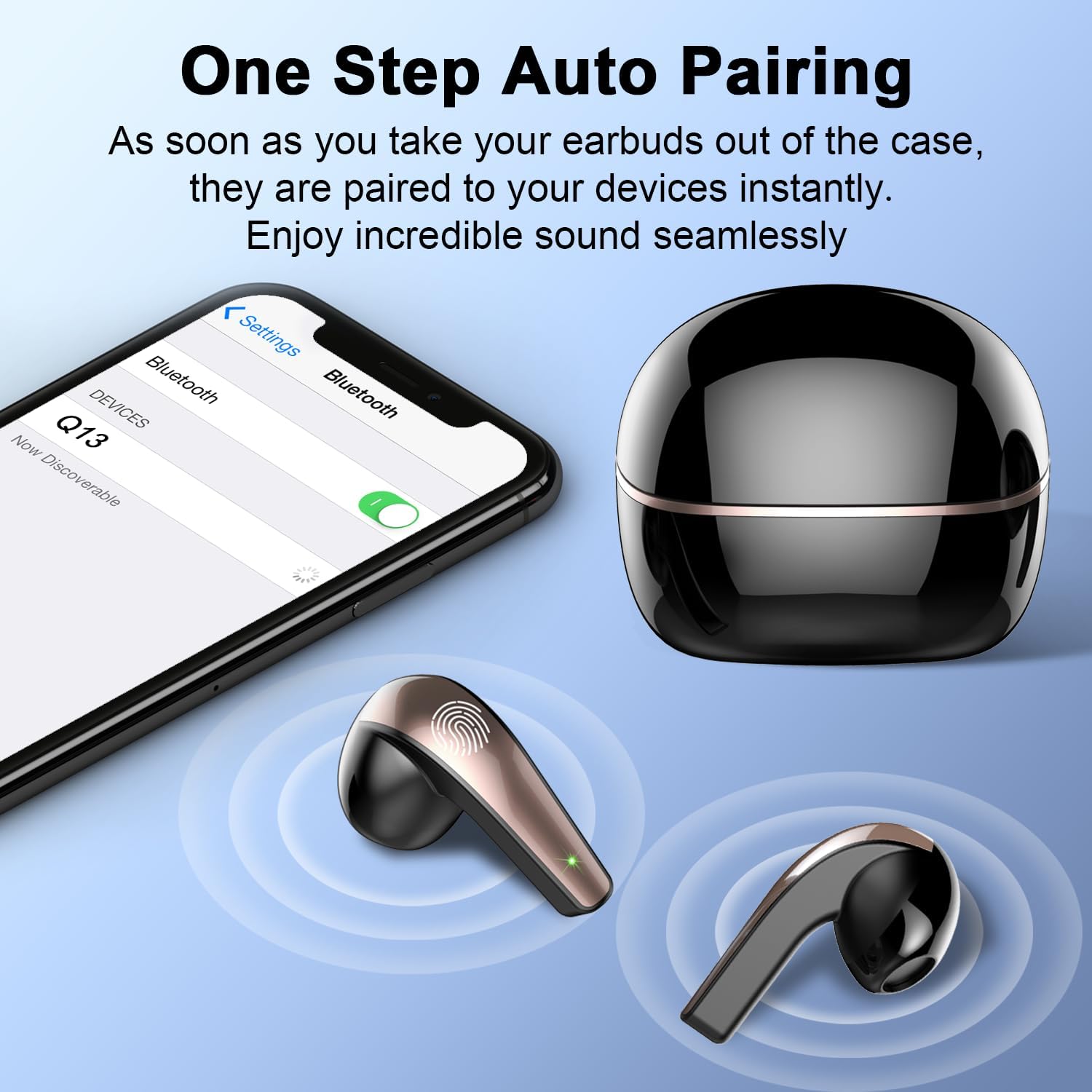 - Immersive Sound und Automatische Kopplung: Der bluetooth kopfhörer verfügt über ein einzigartiges Stereodesign, einen dynamischen 13mm Graphene Audiotreiber und der AAC/SBC-Audiocodierungstechnologie, fängt es jedes detail der Musik und 43 % Bassverstärkung. Die Kopfhörer Kabellos Bluetooth können sich automatisch einschalten und mit dem zuletzt gekoppelten Gerät verbinden (1S), wenn Sie die Ladebox öffnen, wodurch langwierige Operationen vermieden und Wartezeiten gespart werden.