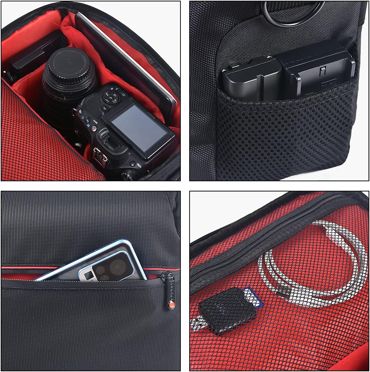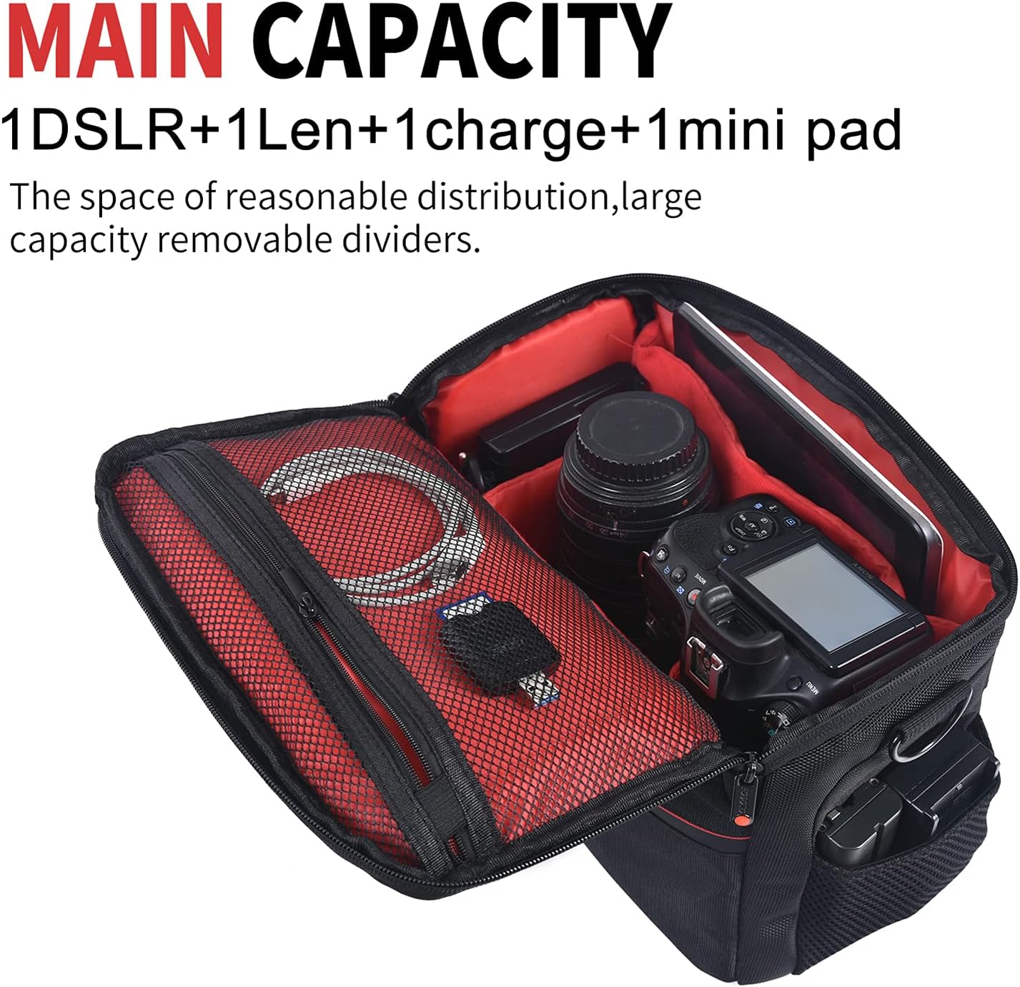 - 【Anpassbarer Speicher】 Kommt mit 2 abnehmbaren dicken Trennwänden. Speicherplatz kann nach Ihren Bedürfnissen geändert werden. Die verdickte stoßfeste Trennwand schützt Ihre Kamera vor Kratzern.