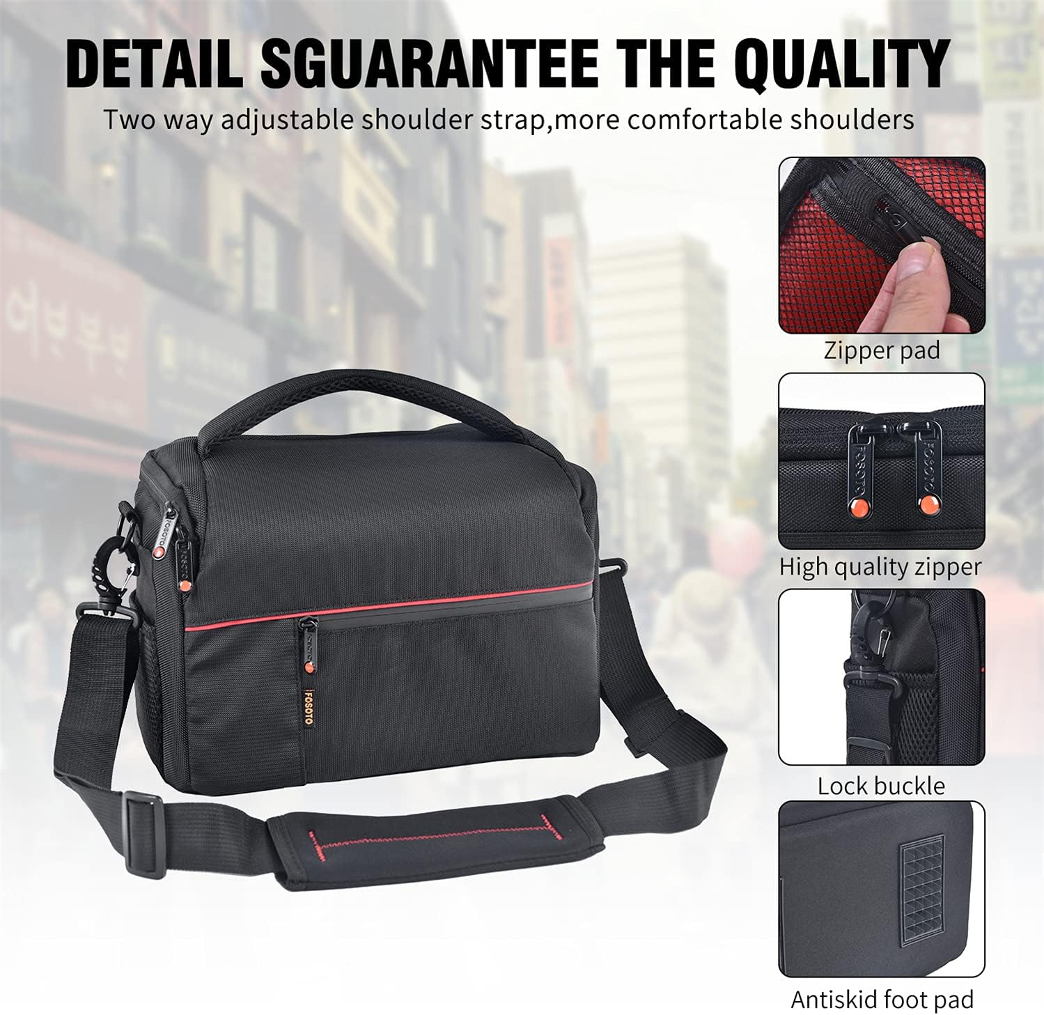 - 【Paket beinhaltet】 1 x Kameratasche, 1 x Schultergurt(Note:Ohne Kamera und Zubehör)